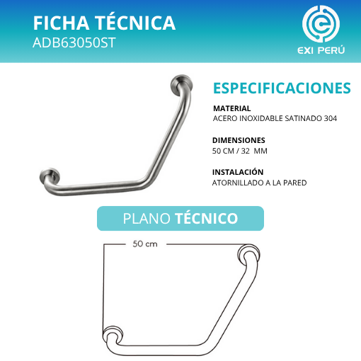Barra de Seguridad Angular de 50cm de 32mm Ac. Satinado 304